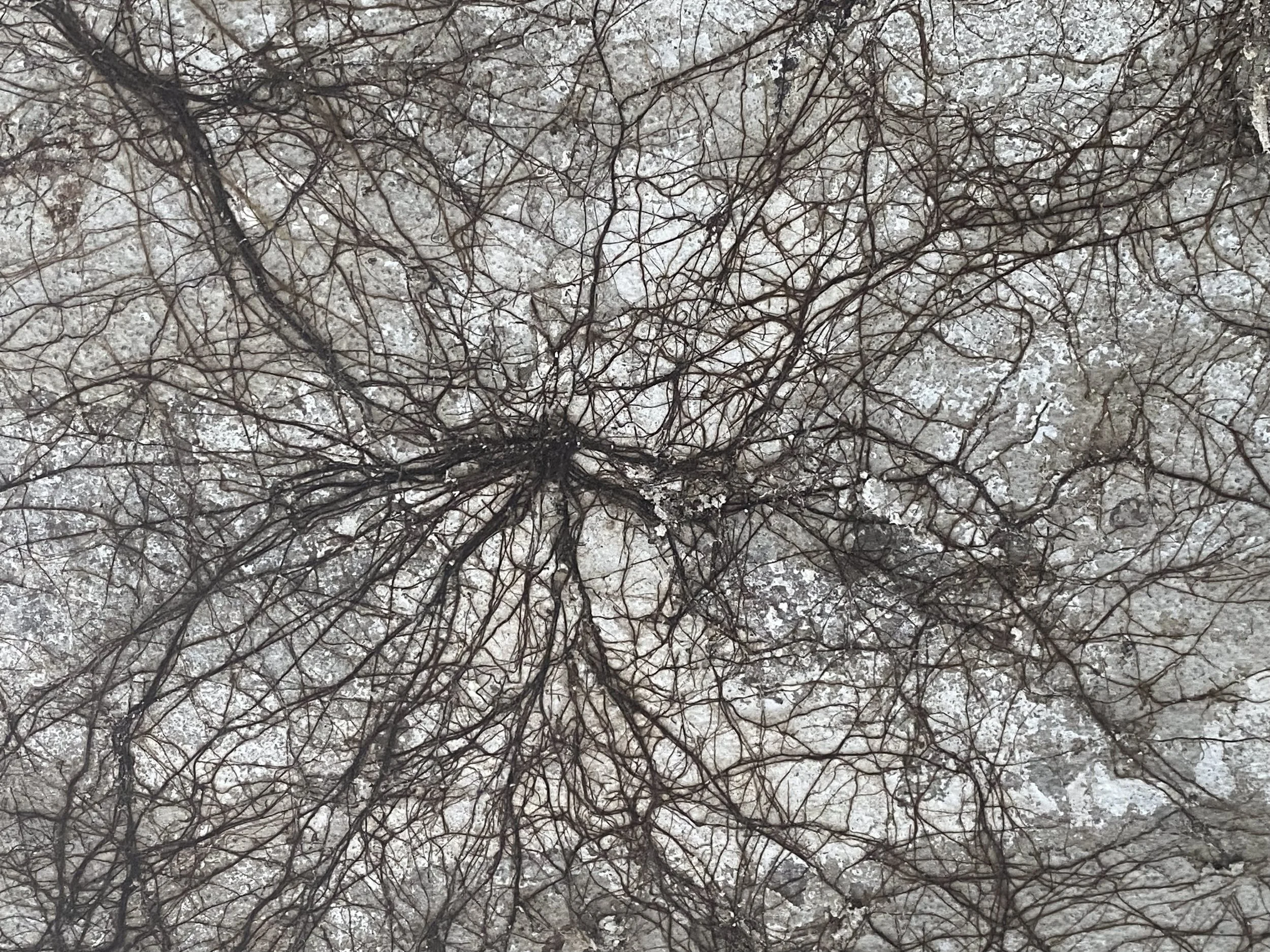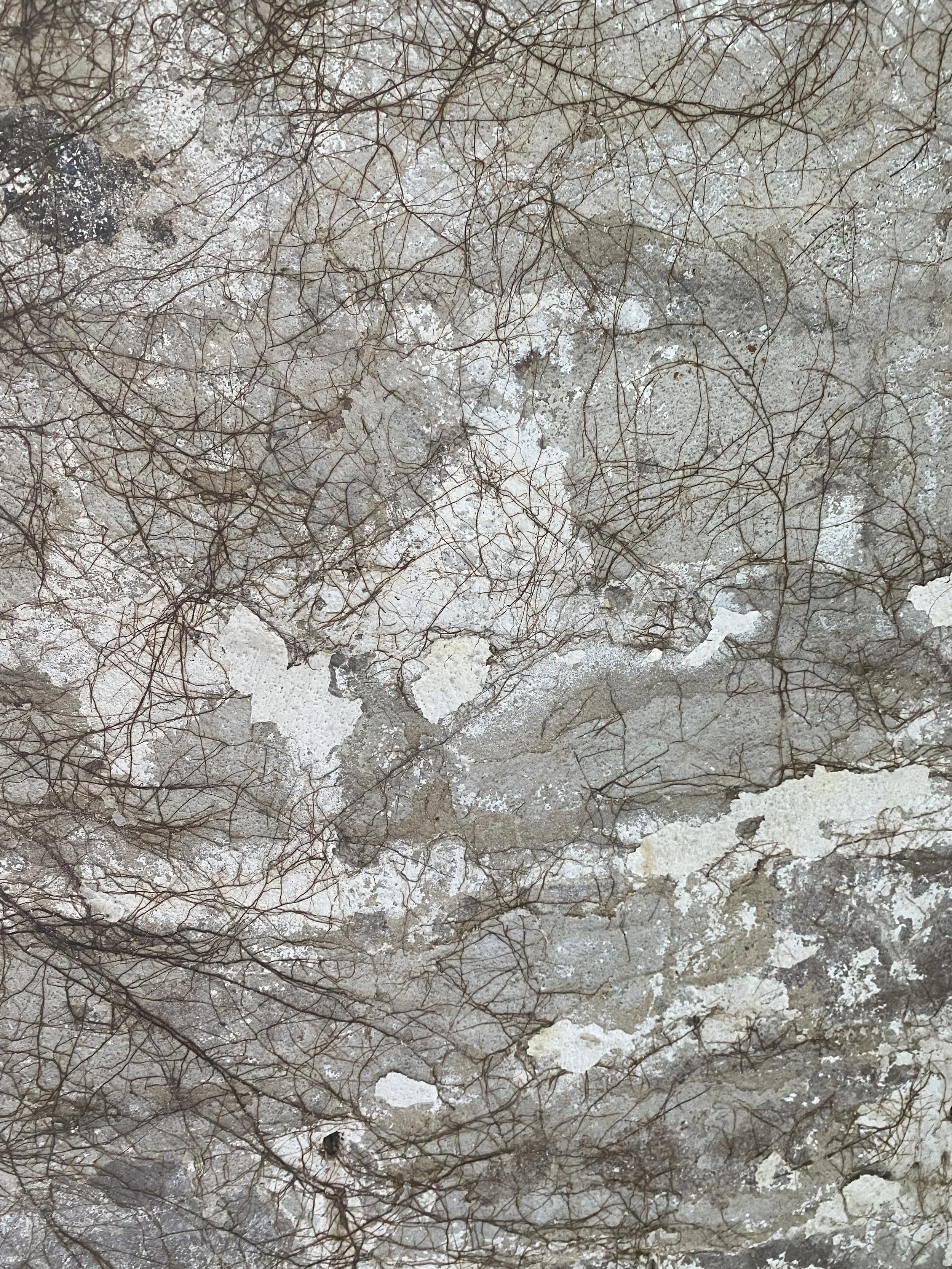 Rhizomes represent a network of diverse elements that coexist without being subordinate to a central entity This multiplicity allows for a richer and more complex understanding of phenomena, acknowledging that multiple perspectives and experiences contribute to the whole. Connectivity is also fundamental. IMAGE : Art Studio Wall magically contained the perfect example of the RHIZOME revealed after dampness has encourage the growth of which was underneath the painted surface.